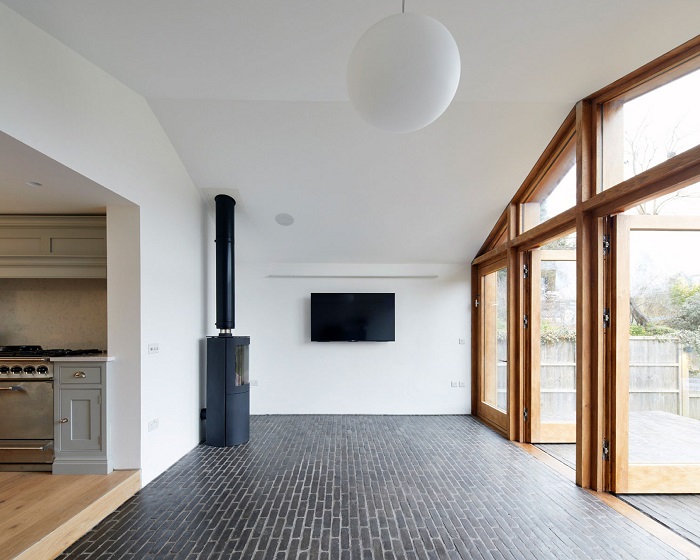 The lower level of this property has a Belgian brick floor finish which flows outside to create a new terrace area. Underfloor heating throughout the extension with a new wood-burning fireplace.
