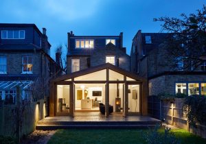 The Teddington project is a high-end bespoke rear extension. Internally this property has had two floor levels, the top level has oak flooring with a new bespoke wood kitchen and utility room.