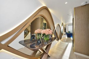 This apartment is located in the Hoola Tower in the Canary Wharf area. The owner wanted a refurbishment that suited their style and gave them the ability to work from home. We wanted to take advantage of the amount of light that comes in through the windows, so knew that mirrors would be a big part of the design.